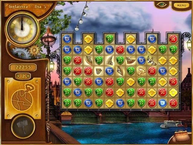Los tableros de este juego de conectar 3 són de gran belleza visual y de ritmo apacible. El juego esta muy bien adaptado, paso a paso a la gran novela de Julio Verne, donde cada inprevisto lo podremos solucionar con un puzzle de match 3 y según en el lugar del mundo donde estemos, irán cambiando los fondos de cada tablero, así como la música y demás elementos. Además con la descarga del juego Bigfish Games te regala un exlusivo protector de pantalla con el que podrás tener las imagenes más espectaculares del juego en el escritorio de tu ordenador.